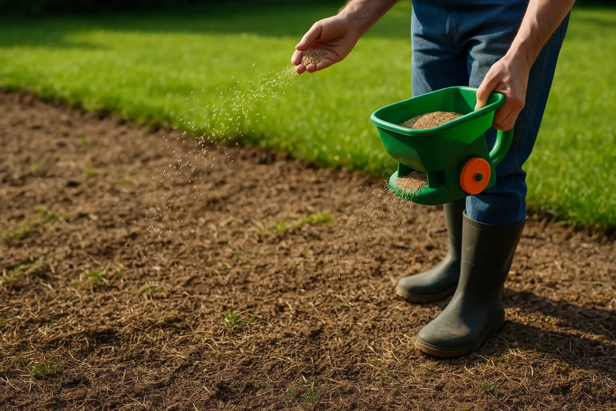 Une fois le terrain prêt, le semis peut commencer. Il est conseillé de choisir un mélange de gazon adapté à votre usage : gazon d’ornement pour un rendu esthétique, gazon résistant pour les zones de passage ou encore gazon rustique pour les sols pauvres. La répartition des graines doit être homogène. L’idéal est de croiser les passages : semer une première fois dans un sens, puis repasser perpendiculairement. Vous pouvez ensuite recouvrir légèrement les graines avec un terreau de finition ou passer le dos du râteau pour les enfouir superficiellement.
